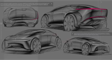 A partir de los detalles del cliente recogidos en el brief, se elaboran varias propuestas de diseño mediante bocetos digitales detallados, sin aplicación de color ni materiales, que permiten apreciar claramente la forma exterior de cada opción.
